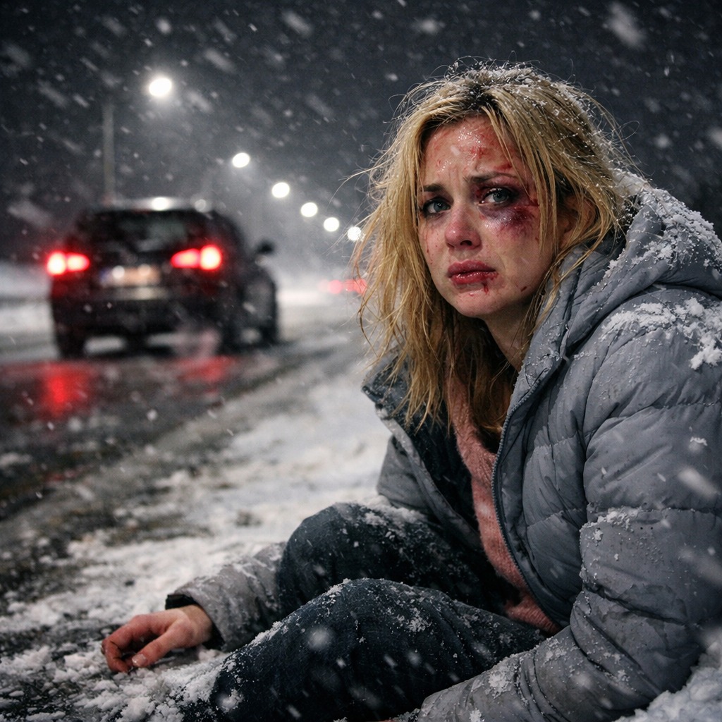 Муж избил Оливию и выбросил из машины посреди трассы в мороз. Снег валил с самого утра, превращая дорогу в скользкую ленту опасности.